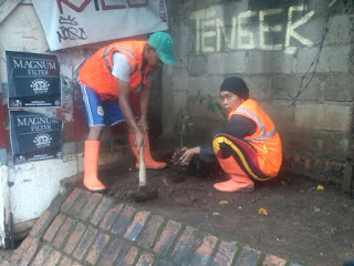 aktifitas remaja pejaten timur melakukan penanaman pohon dilahan kosong/mati,menjadi ruang terbuka hijau.