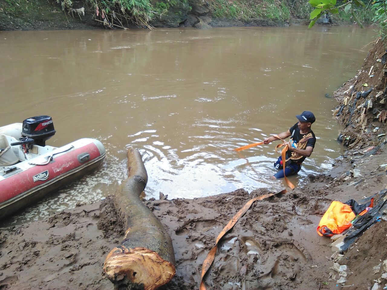 Penebangan Pohon Tumbang Dibantaran Kali Ciliwung,