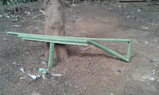 Memanfaatkan sampah pelepah pisang,menjadi senapang laras panjang.