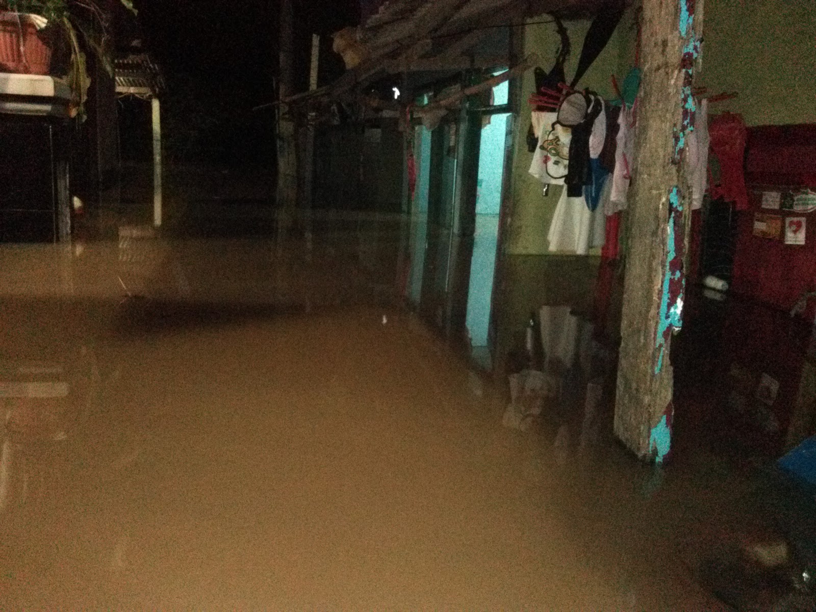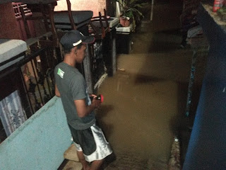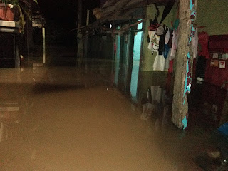 Sementara warga terdampak banjir mengungsi di tetangga, kerabat yg tak terkena banjir dan sebagian di lantai 2 rumahnya.